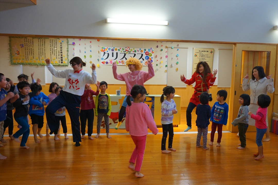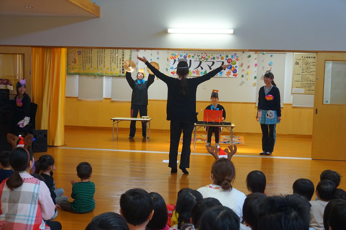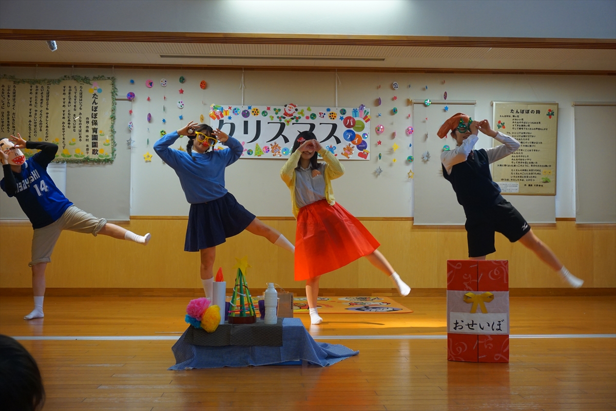 2018-12-20 ☆ クリスマスパーティ① ☆ みんなが楽しみにしていたクリスマスパーティがありました!まずはそらぐみさんのクリスマスソングからスタート。その後は先生たちからの出し物のプレゼントです。ダンスを踊ったり、合奏を聞いたり、劇を見たり。その後はサンタクロースがやってきてプレゼントをもらって大喜びでした!