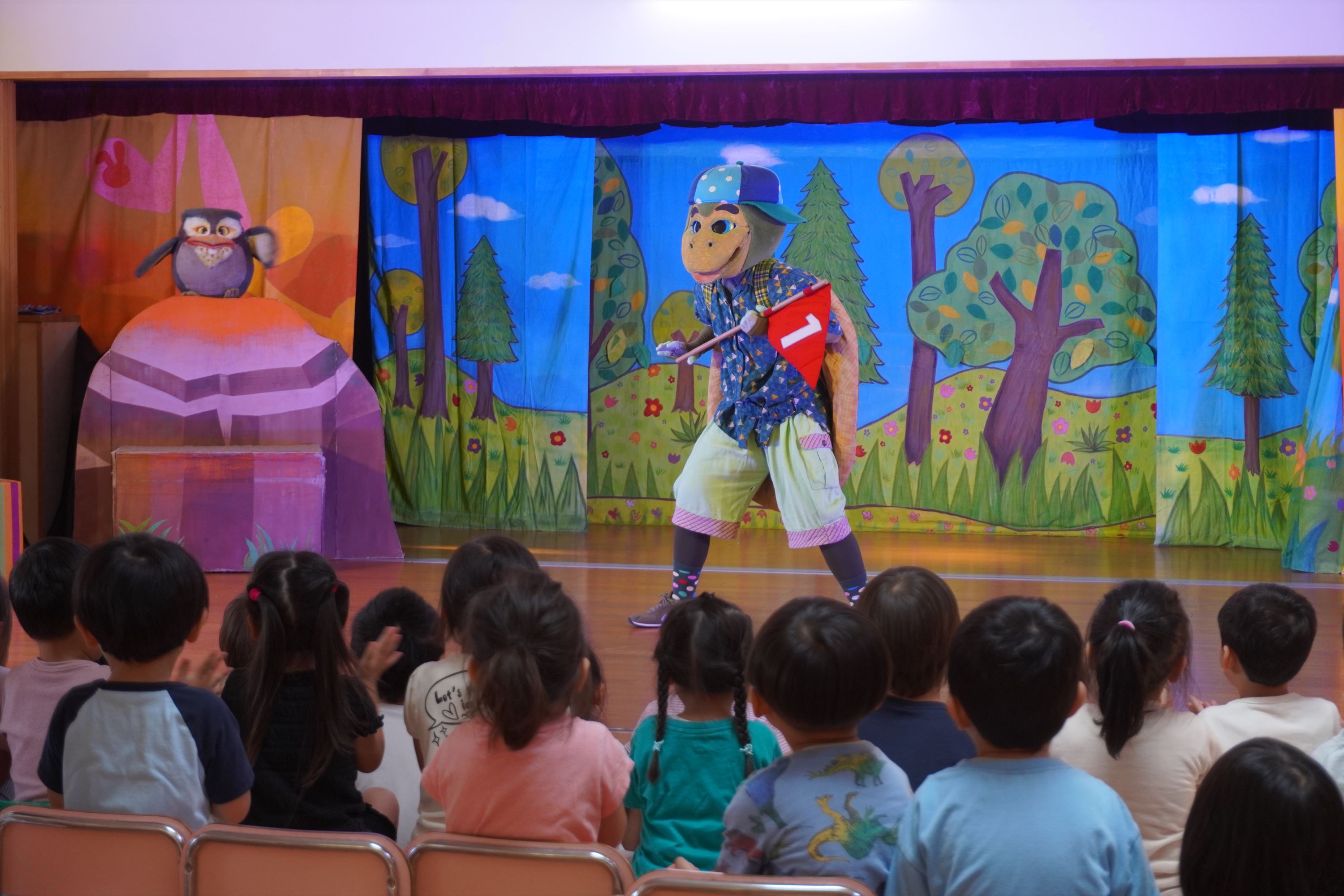 2023-07-27 ☆ 観劇会 ☆ 今日は観劇会!演目は「うさぎとかめ」です。うさぎとかめの楽しく愉快なマラソン競争。夏の楽しい思い出になりました! たいよう、こころ、そらぐみさんは記念撮影をしました!子どもたちのアルバムに掲載されています。