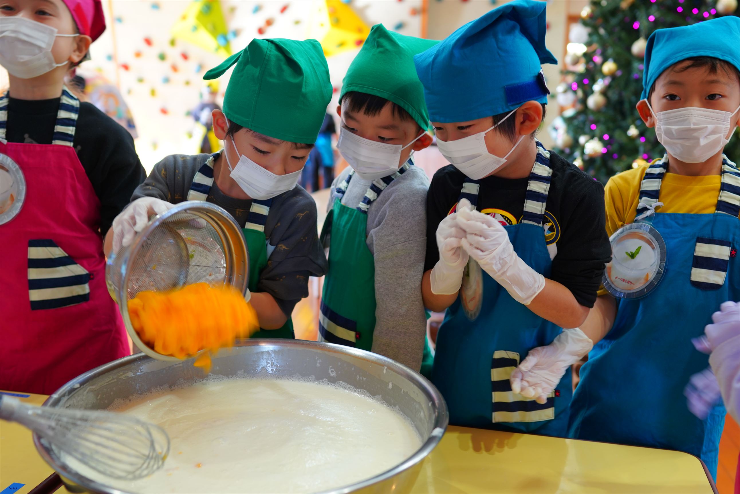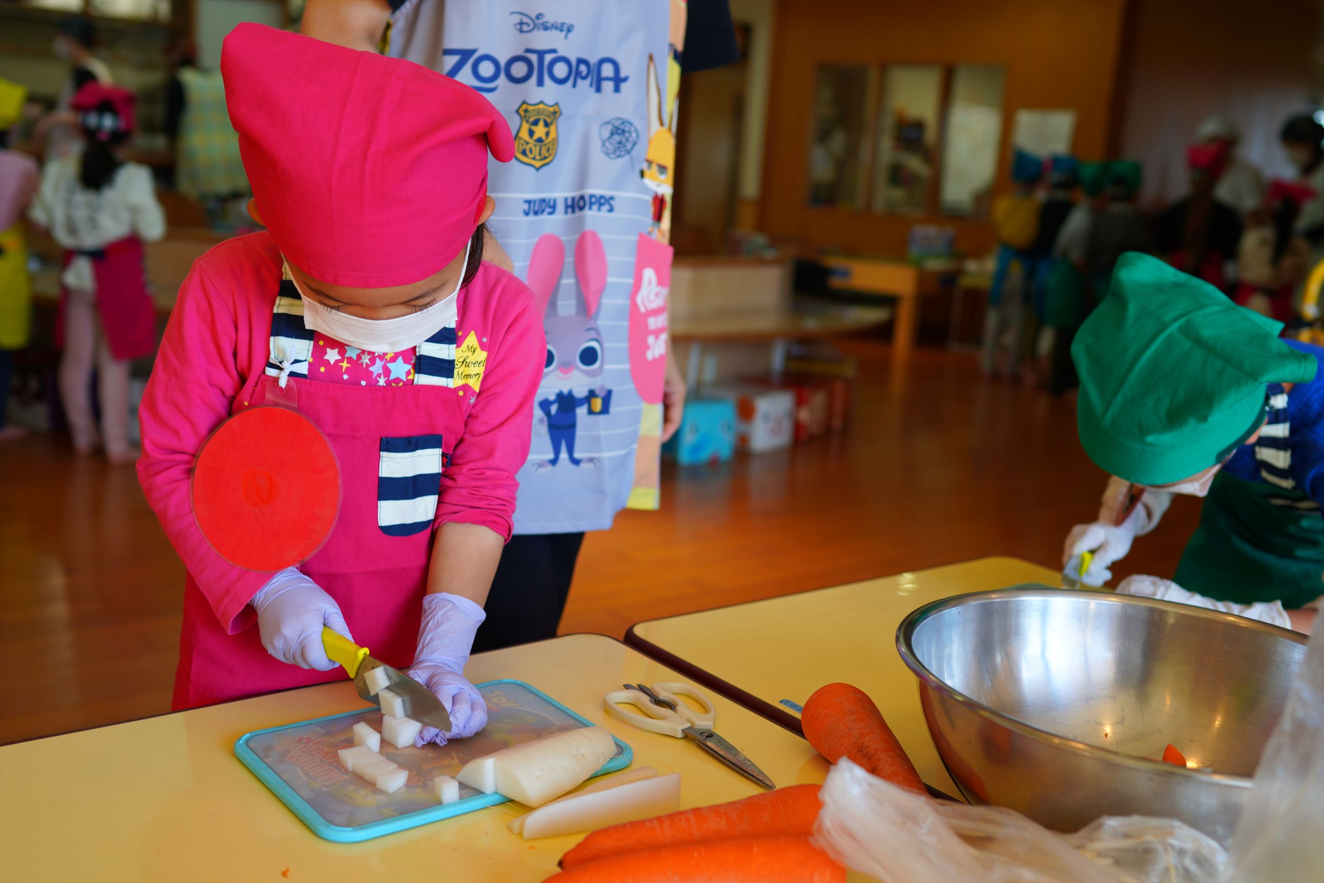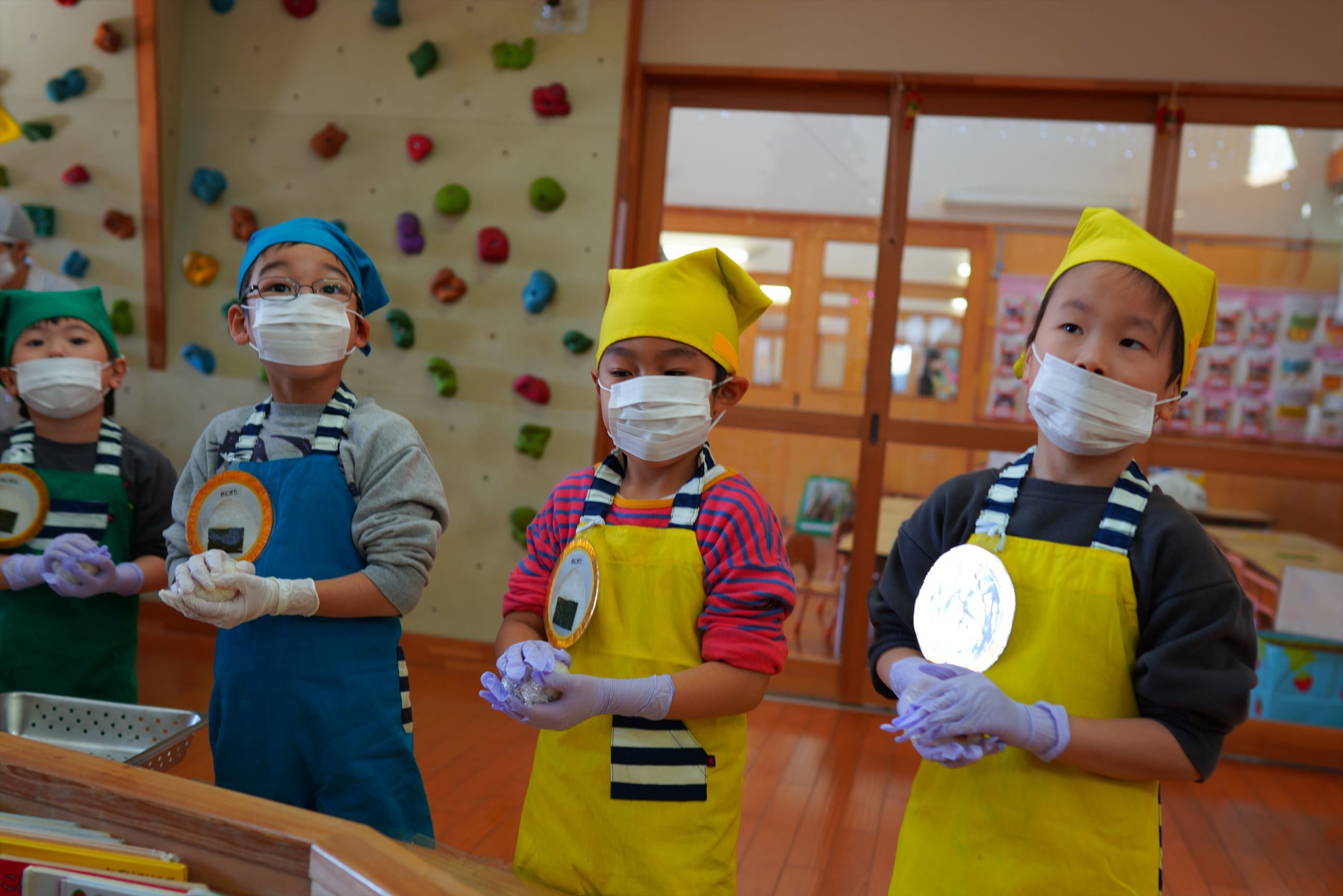災害時を想定した炊き出し会を行いました。年長さんを中心に、全園児が協力して給食作り。豚汁、おにぎり、ヨーグルトゼリー。みんなで協力して楽しく作れました!