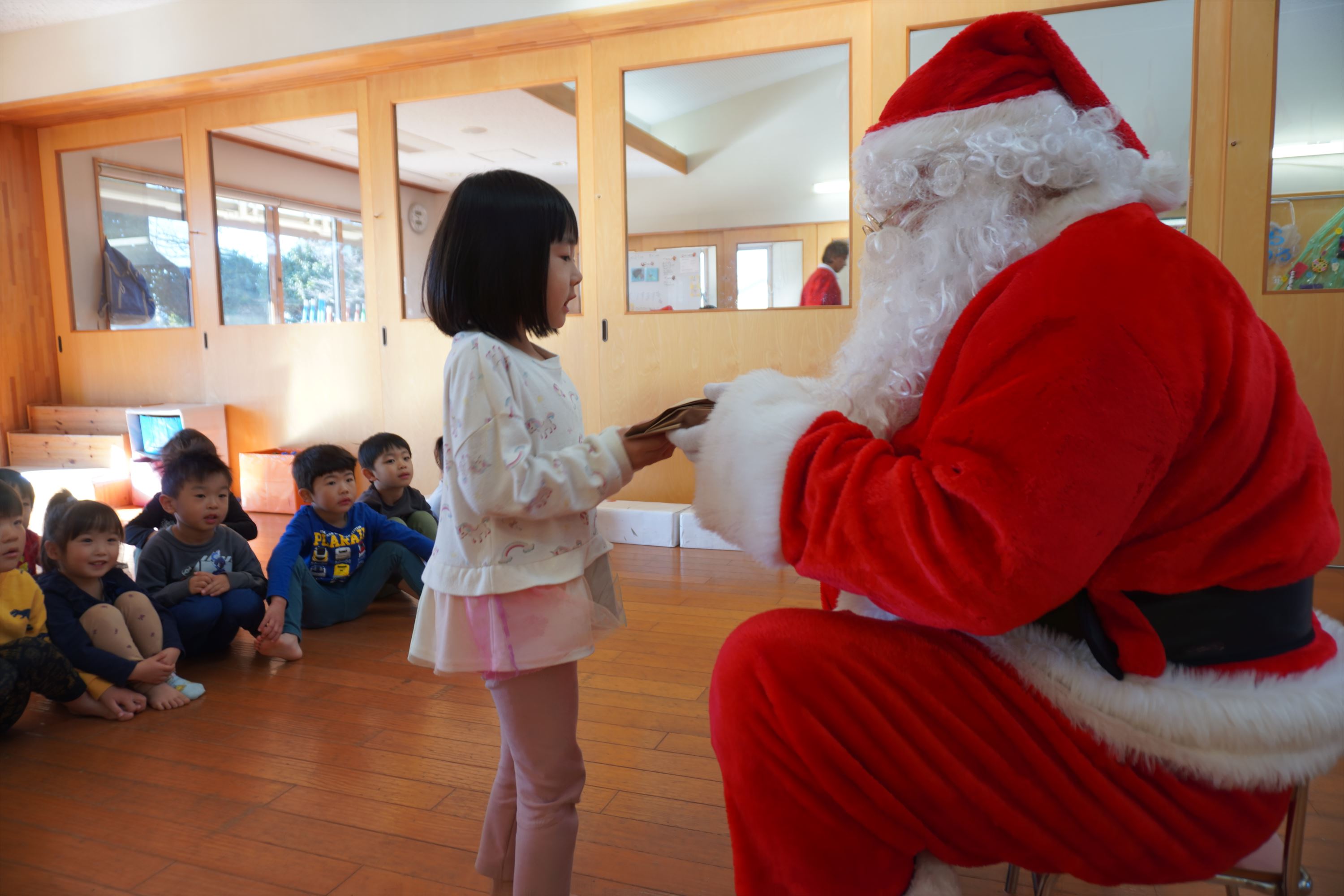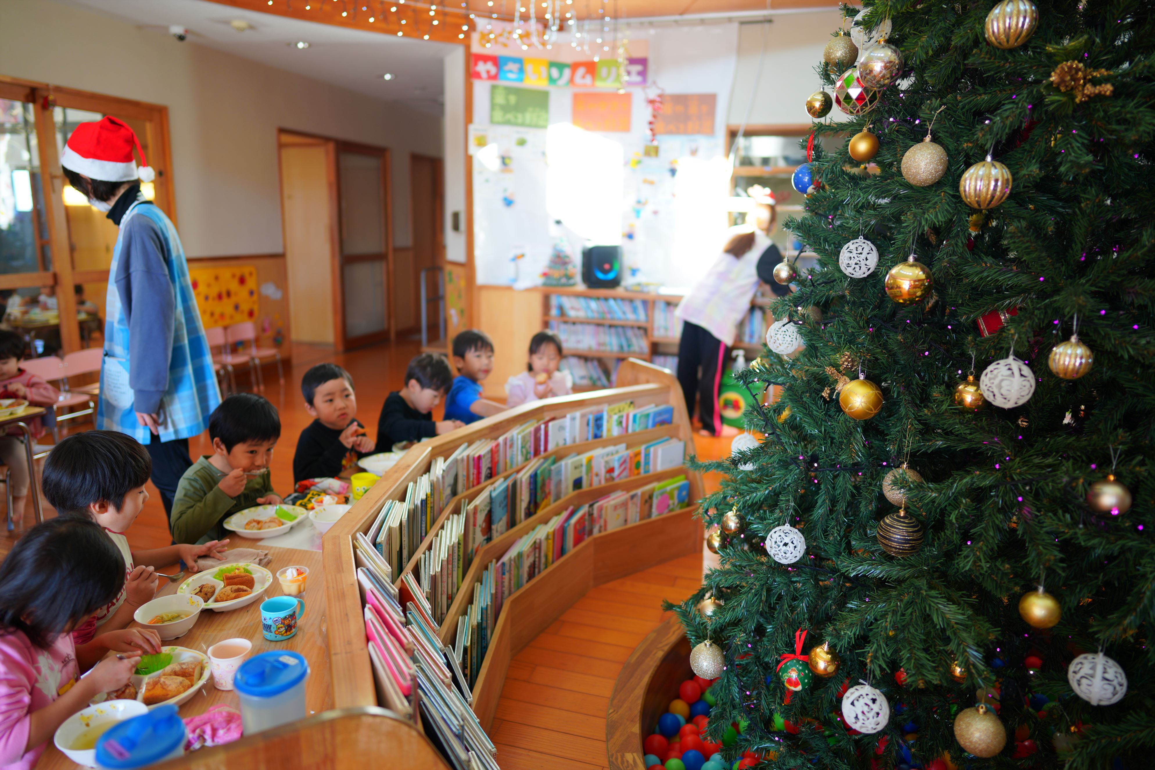 もうすぐクリスマス♪保育園では、一足早いクリスマスパーティをしました。楽しみにしていたサンタさんがやってくると、目を輝かせながら喜んでいた子どもたち。直接プレゼントをもらうと、ウキウキワクワクしながら喜んでいました。給食はクリスマスバイキング。クリスマスツリーの下で食べたご飯は、とってもおいしかったね。