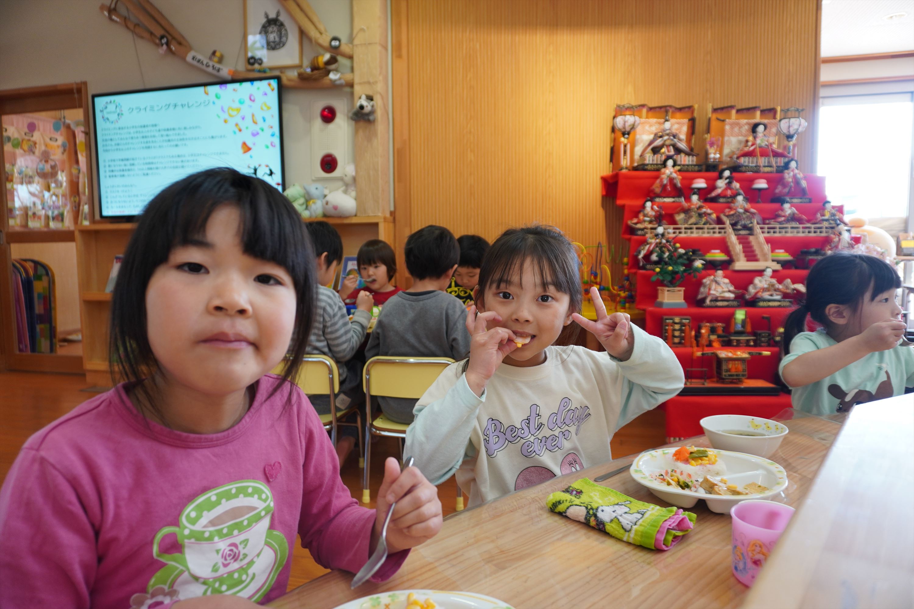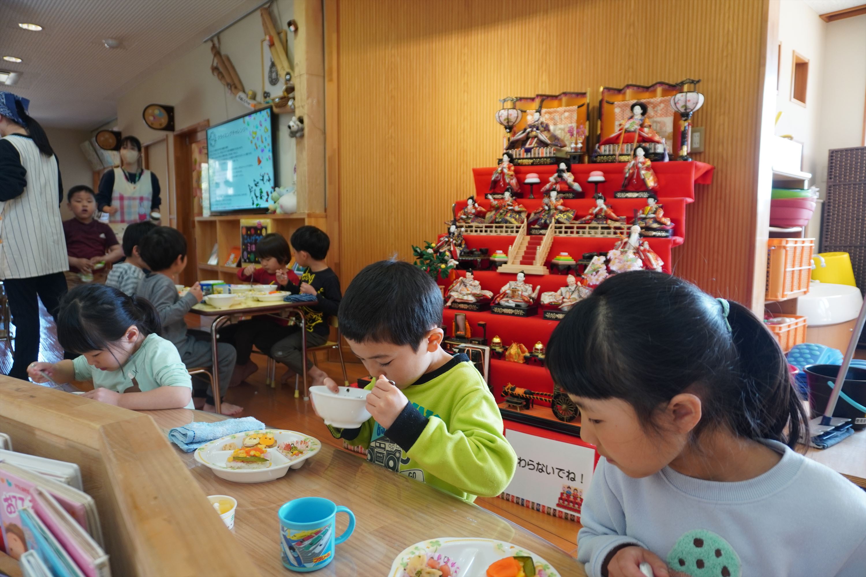 2023.03.28 ☆ ドッヂボール大会 ☆ 恒例となったそらぐみさん最後のイベント、ドッヂボール大会!先生たちとの混合チームで、優勝目指して楽しみます。勝ったり負けたりはあったけど、大人も子どもも一緒になって楽しめたことが何よりの宝物だね! 2023.03.16 ☆ 令和4年度 卒園式 ☆ 今日はたんぽぽ保育園の卒園式でした。子どもの成長はあっという間です。今この時を大切に、毎日を楽しんでいきましょう! 2023.03.14 ☆ 更新しました ☆ 消防訓練の様子を掲載しました。「子どもたちのアルバム」からご覧になってください。(掲載期間が3月一杯となっておりますので、お早めにご覧ください。) 2023.03.14 ☆ 消防避難訓練 ☆ たんぽぽ保育園に消防車がやってきた!3年ぶりの消防車に、みんな大はしゃぎ!「おっきぃ~」「かっこいい~」と喜びの声が上がりましたよ! 2023.03.03 ☆ ひな祭りバイキング ☆ 今日はひな祭り!ホールでひな祭りバイキングを楽しみました。給食も特別仕様です♪おいしかったね!