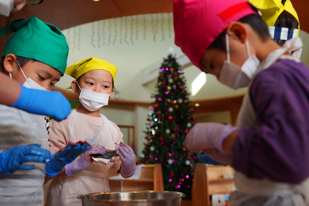 2022.12.28 ☆ 更新しました ☆ 12月の様子を掲載しました。「子どもたちのアルバム」からご覧になってください。 2022.12.14 ☆ 更新しました ☆ 遊びの様子とクリスマスの写真を掲載しました。「子どもたちのアルバム」からご覧になってください。(そらぐみはアルバム掲載のため、ありません。) 2022.12.14 ☆ お餅つき ☆ 早いもので、今年も1年が終わろうとしています。今日は年末恒例のお餅つきを行いました!年長さんがついたお餅は、お正月飾りの鏡餅になりますよ! 2022.12.02 ☆ イワシの手開き ☆ そらぐみさんの食育活動。イワシを自分たちで開いて調理します。命を頂く大切さを経験から学ぶことは、大事なことですね。悪戦苦闘しながらも、興味関心を持って取り組んでいました! 2022.12.01 ☆ 更新しました ☆ 11月の様子を掲載しました。「子どもたちのアルバム」からご覧になってください。