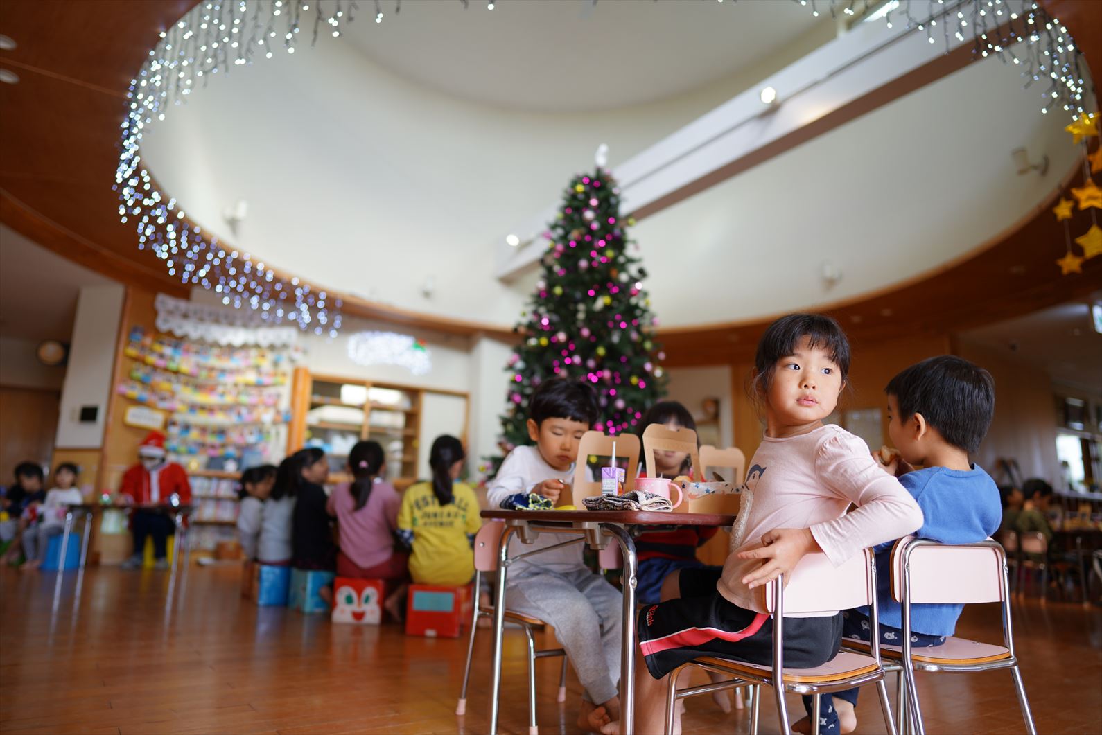 クリスマスイブの今日、たんぽぽ保育園にもサンタクロースがやってきてくれました。サンタさんとプレゼントに大喜びの子どもたち。クリスマスランチは、大きなツリーを見ながら楽しみました!(クリスマスランチの内容はインスタグラムをご覧ください!)