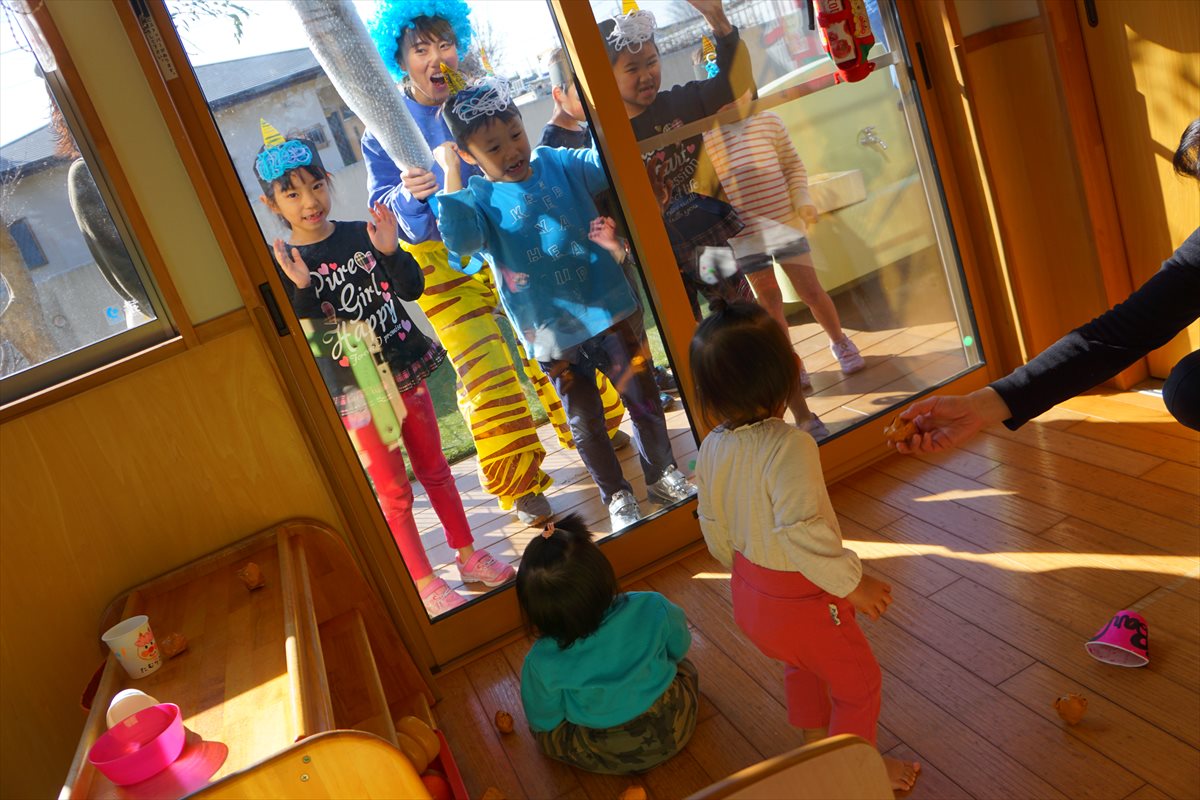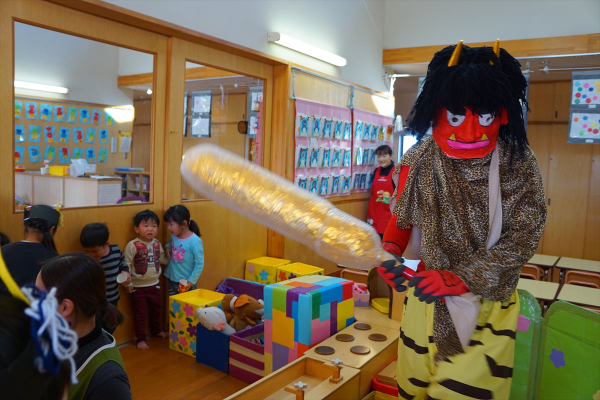 2月3日の節分の日。今年もたんぽぽ保育園に鬼たちがやってきましたよ。赤鬼、青鬼と共にかわいいちびっこ鬼さんたちがやってきて、みんなを驚かしに回りましたよ。みんなで心の中の鬼を追い出そう!