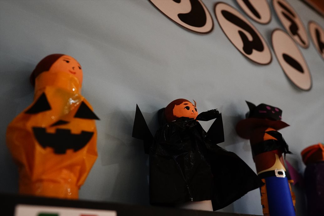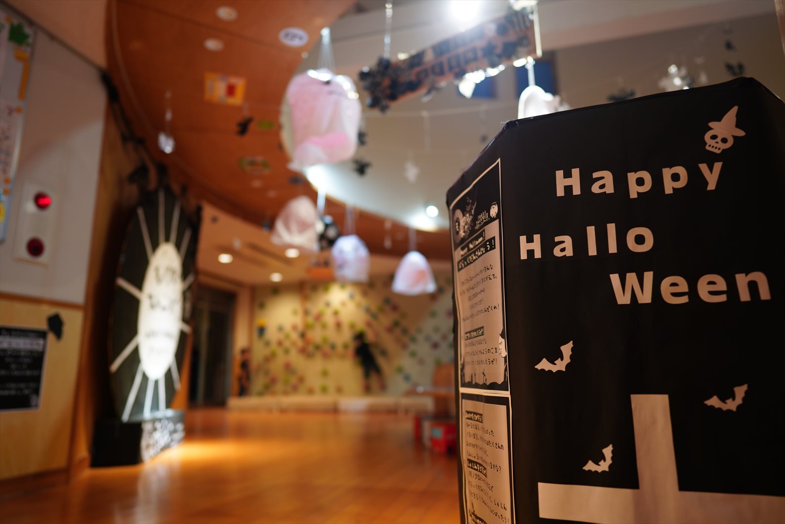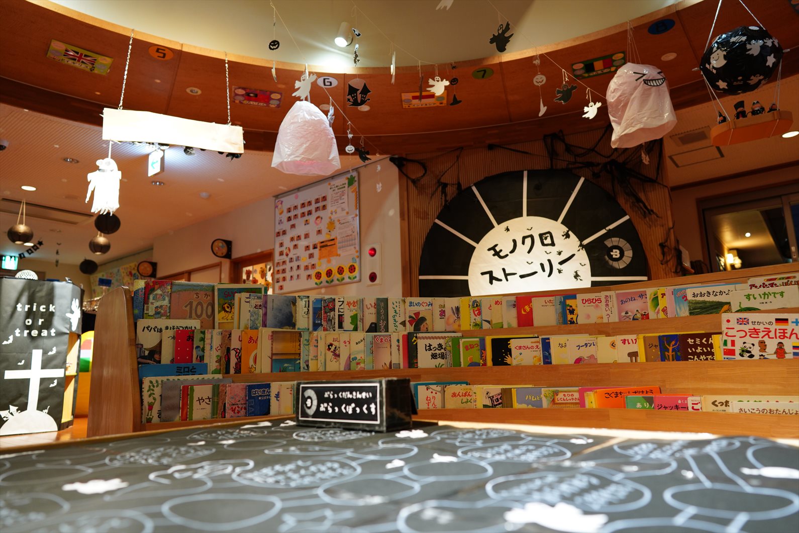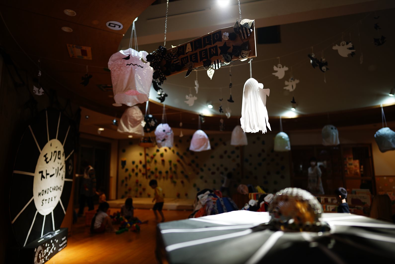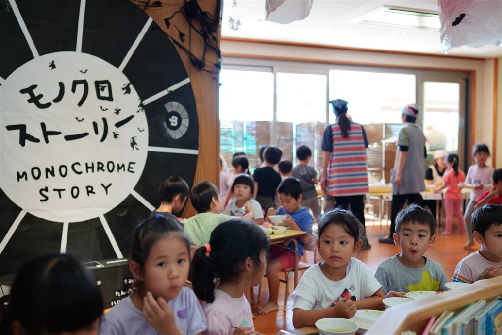 運動会が終わると、保育園内はハロウィン仕様に模様替えです。運動会のカラフルな世界から色を奪いにやってきた「ぶらっくだん」。園内は色を奪れ、モノクロな世界に!今年はモノクロなハロウィンを楽しもう!