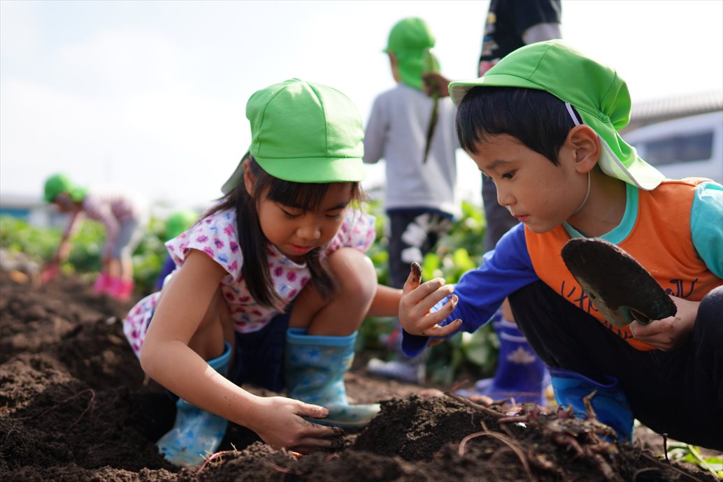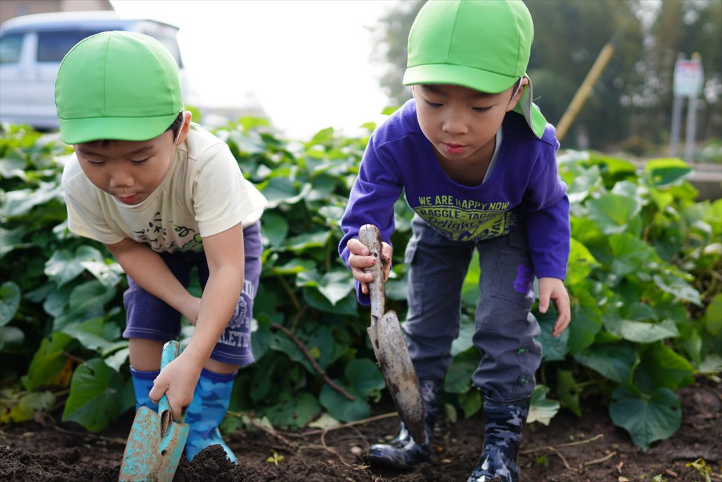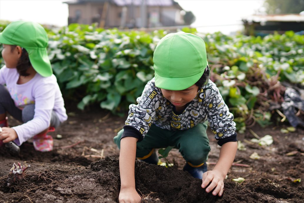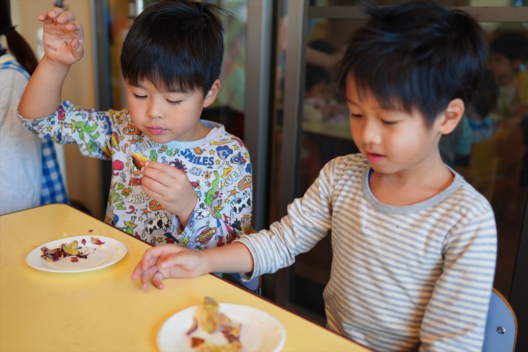 朝の内は濃霧でしたが、さつまいもを掘る頃にはすっかりいい天気に。とっても大きなさつまいもや、たくさんのおいもに大喜びの子どもたち。掘ってきたおいもは焼き芋にして食べましたよ。秋の風物詩ですね!