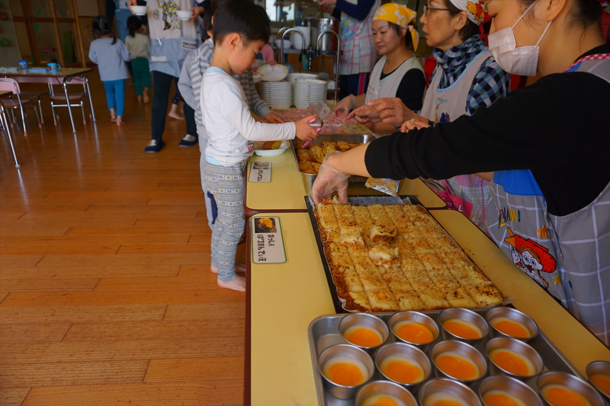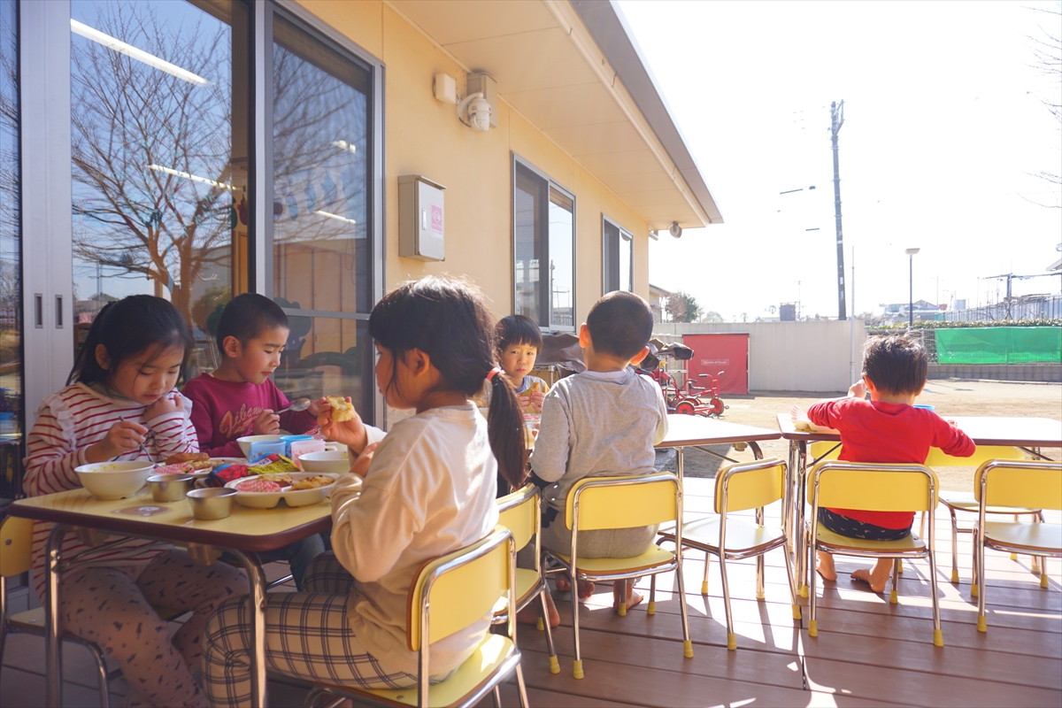 今日は2月生まれのお誕生日会。お祝いに「テーブルシアター」をしてお祝いをしましたよ。お誕生日バイキング、今月は「フランス料理」。天気が良かったのでテラスバイキングをしましたよ!