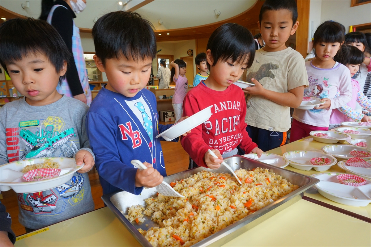 3月生まれのお友達、お誕生日おめでとう!先生たちの「マジック出し物シアター」でお誕生日のお祝いをしましたよ。今月のお誕生日バイキングワールドツアーは「中国」。なじみの深いチャーハンや麻婆豆腐などをおいしくいただきました!4月から始まった「お誕生日バイキングワールドツアー」も今月で最後です。気球には12の国の人々が勢ぞろいです。