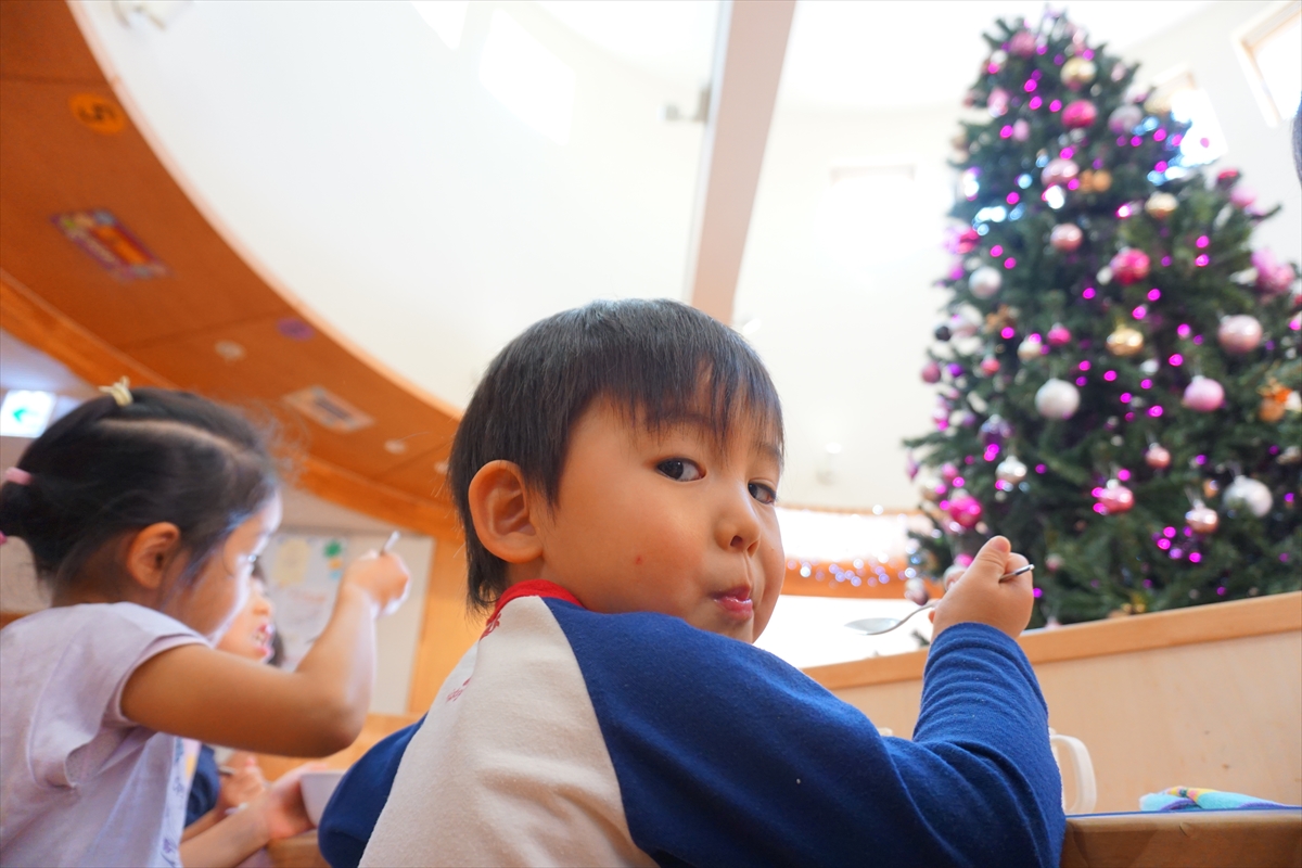みんなが楽しみにしていたクリスマスパーティがありました!まずはそらぐみさんのクリスマスソングからスタート。その後は先生たちからの出し物のプレゼントです。ダンスを踊ったり、合奏を聞いたり、劇を見たり。その後はサンタクロースがやってきてプレゼントをもらって大喜びでした!