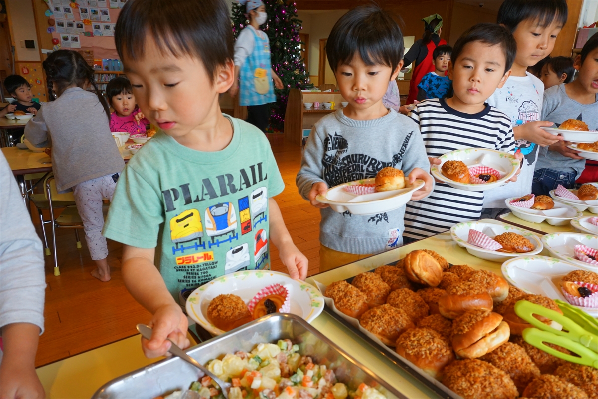 今日は12月生まれのお友達のお誕生日会!「とび出る人形シアター」でお誕生日のお祝いをしました。お誕生日バイキング、今月は【ロシア料理】。ボルシチやピロシキなど、冬ならではの体の暖まる料理をおいしそうに食べていましたよ。気球の乗組員たちも賑やかになってきました。